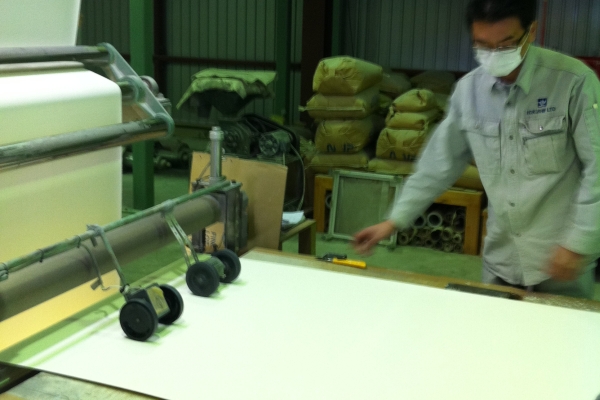 食品工場から毎月廃棄されていた卵殻を機能壁へと生まれ変わらせました。約94%が炭酸カルシウムの卵殻にある多数の気孔(きこう)を活かし、湿気を吸放湿する機能壁です。建材として一般住宅の内装や商業施設の授乳室・オムツ交換室などにも多数採用されています。